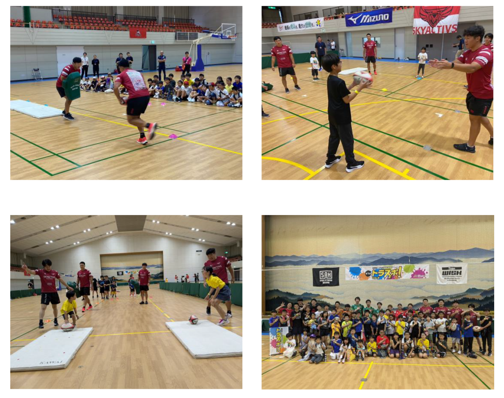 ㈱広峰芸能主催の当イベントには、バスケットボール(ドラゴンフライズ広島、スリストム広島)、ロードレース(ヴィクトワール広島)、バレーボール(JTサンダース広島)、野球(はつかいちサンブレイズ)、ラグビー(マツダスカイアクティブズ広島)が参加、約50名の三次っ子たちに色んなスポーツを体験していただきました。