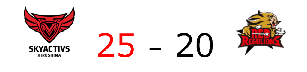 1月27日(土) 21-22と遠い1点で涙を呑んだ中国電力レッドレグリオンズとの”広島ダービー”第2戦、スカイアクティブズ広島のファミリー(SA広島のファンの皆さま、パートナーの皆さま、マツダ社員の皆さま、応援団の皆さま)の皆さんの熱い声援のおかげで、25-20で見事リベンジマッチを制しました。