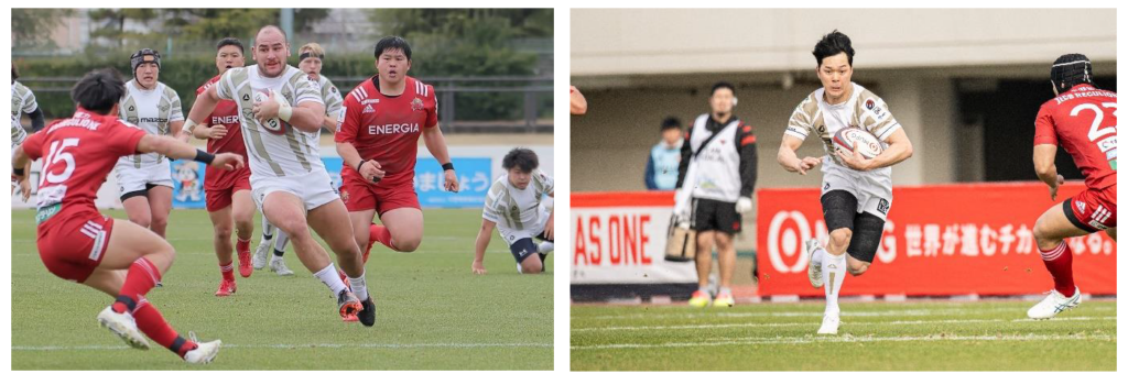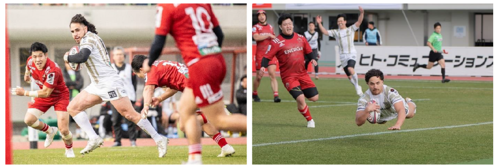 後半32分、ペナルティゴールを決められ、18-20と再逆転されますが、本日の主役となったワッカ選手の輝きを止めることは出来ません。水を得た魚のように、自分の相応しい間合い、場所を示すように、ワッカ選手の突破から最後は12番:ジェイコブ・アベル選手(総務部)がボーナスポイント(3トライ差以上での勝ちは追加で勝点1点を付与となる。)となるトライを奪い、25-20でノーサイドとなりました。