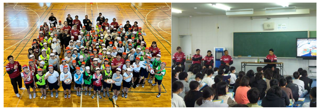 2024年1月18日、府中町立府中南小学校6年生4クラス128名を対象に、タグラグビー教室を実施しました。